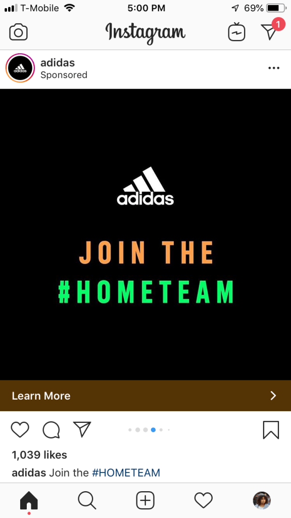 I think that this ad was successful for Adidas because it not only provided entertainment (other slides showed pro athletes talking to consumers about their day-to-day life during quarantine), a platform for athletes and regular people alike to connect at a time where we can’t physically connect, but it also connected millions of people with their hashtag #HOMETEAM.